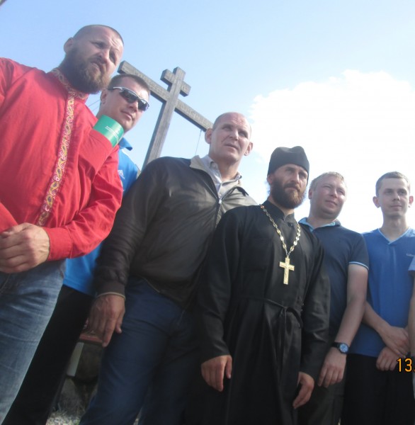 Прибывший в составе харьковской делегации ополченец, воевавший в Славянске и оборонявший Саур-Могилу, Николай Иванович вместе с членом оргкомитета «Планета Русь» Виктором Александровичем Дегтяревым помогали мне всыпать землю в священный Холм.