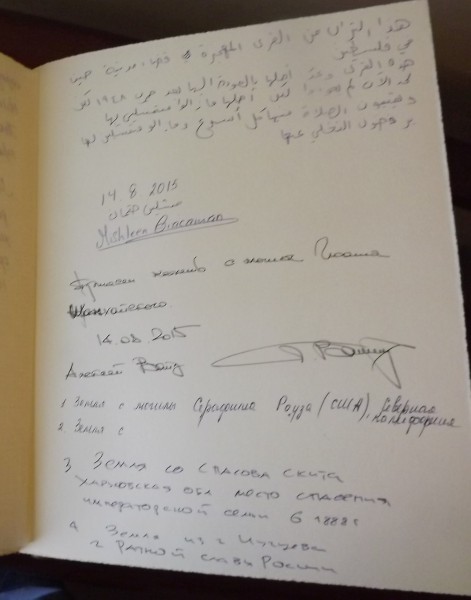 А третий храм Христа Спасителя в Спасовом Скиту, который будет отстроен и освящен после освобождения большой Новороссии, будет символизировать собирание большой Руси от Курил до Карпат. И вот теперь земля с этого места сейчас у нас здесь.