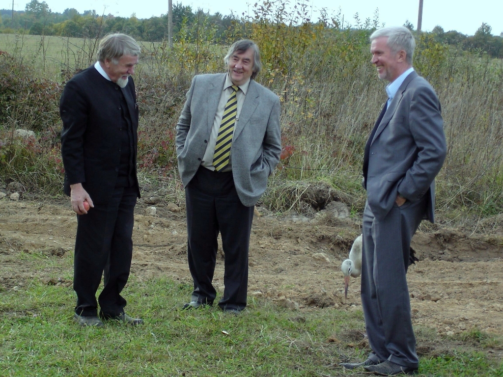 Слева направо: В. Курбатов, А. Проханов, А. Нотин. После освещения Холма Славы